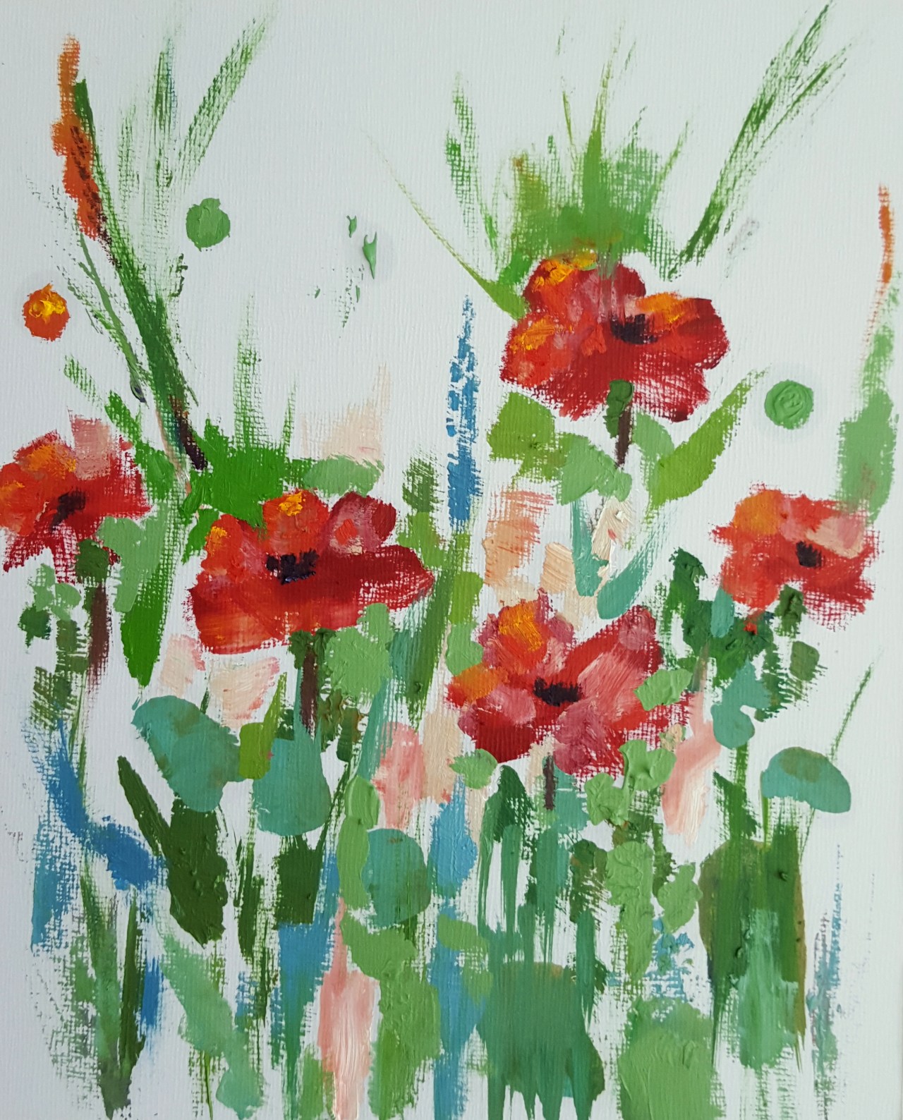 The painting has been inspired by the flush of colors of the wildflowers in the valley area of California. The artwork is my humble attempt to capture the breathtaking pop of brilliance during Summer.