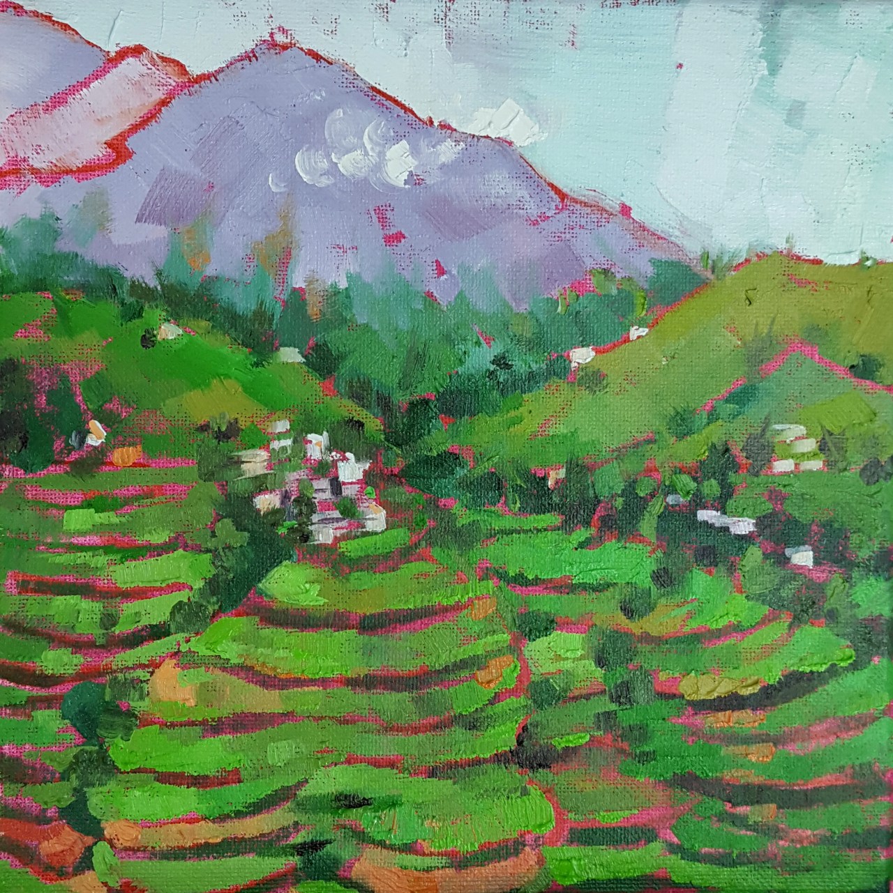 Little Hill Town Above the Step Fields II – Colorful Expressionistic Oil Painting