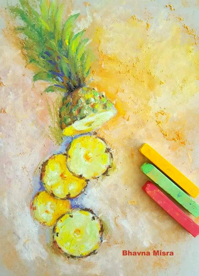Painted from life, it is a small delightful painting. This artwork is signature still-life artwork that Bhavna creates from real life. You would love the rich pastel strokes and chalky texture of the surface.