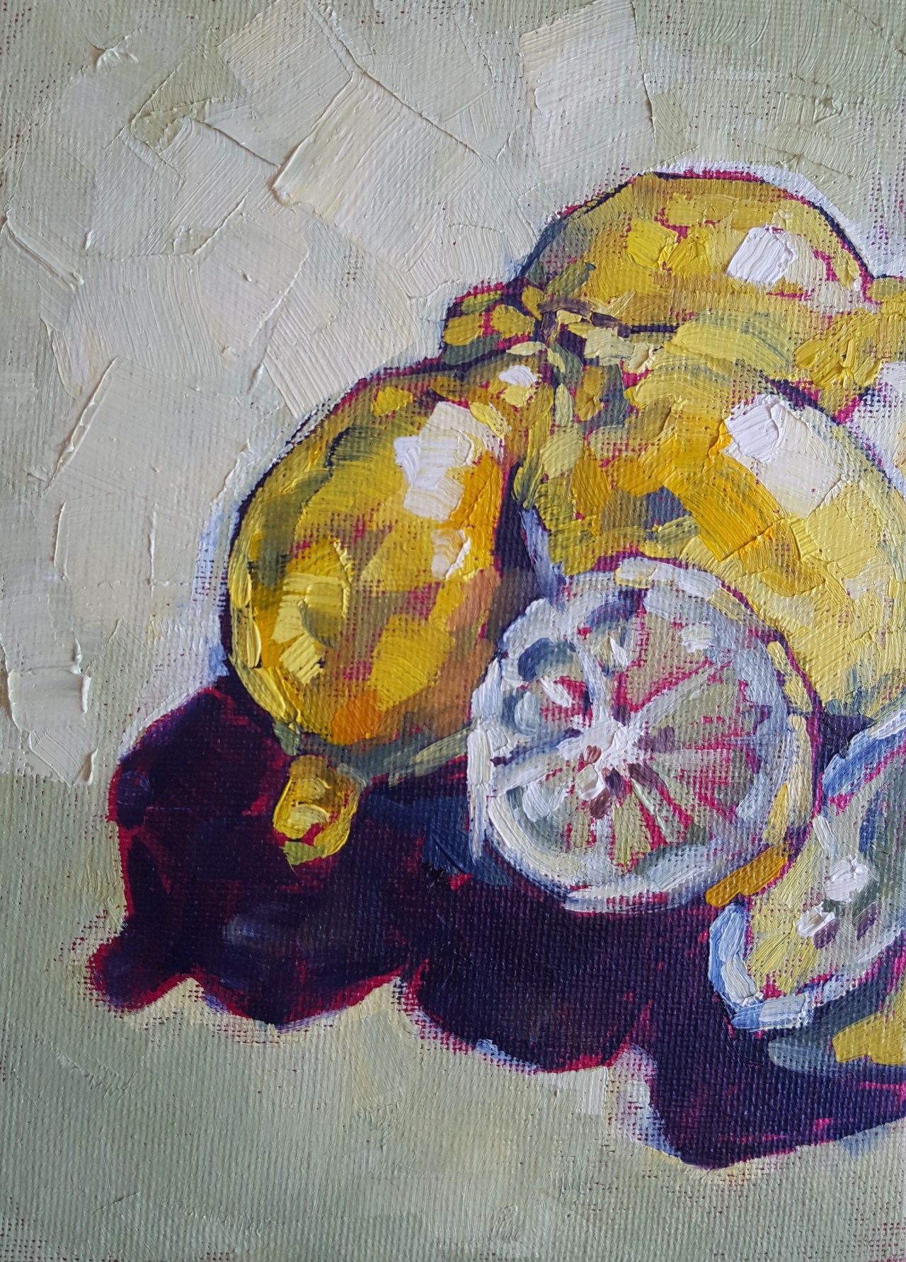 Painted today, it is a small delightful painting. This artwork is signature still-life artwork created for her ongoing Food series. You would love the rich brushstrokes and creamy texture of the surface.