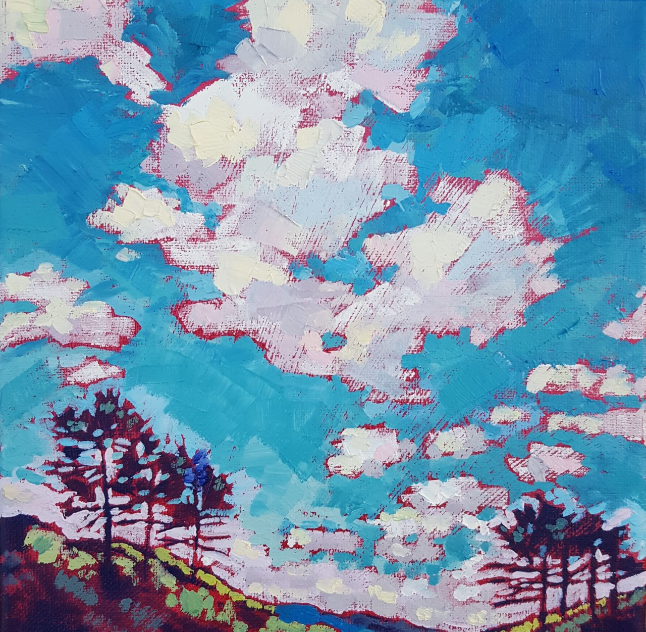 Clouds floating in the sky… a changing skyscape…a sense of urgency. It all inspired this clouds-scape above the rolling hills of Castro Valley, here in California.