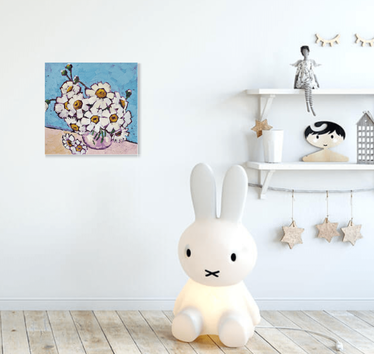 Here is a small daisy bouquet. The artwork has confident, lush, and fluid brushwork that captures the subject and sentiment.