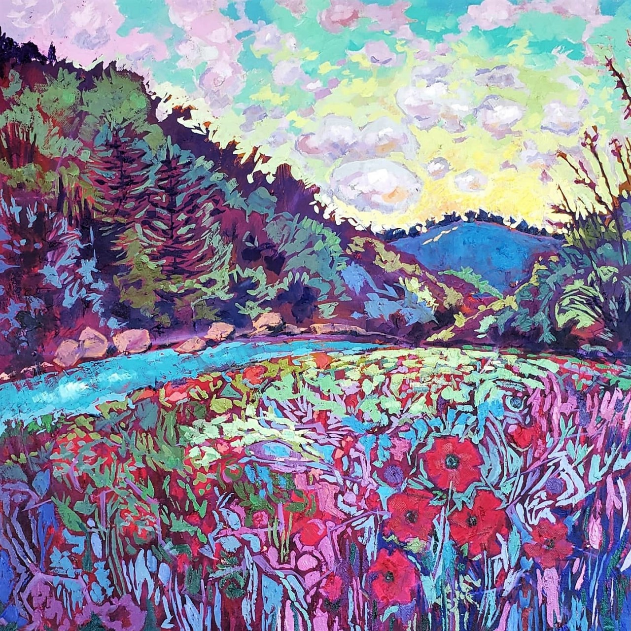Painted from photo reference, it is an oil landscape that captures the California landscape in its dreamy essence.