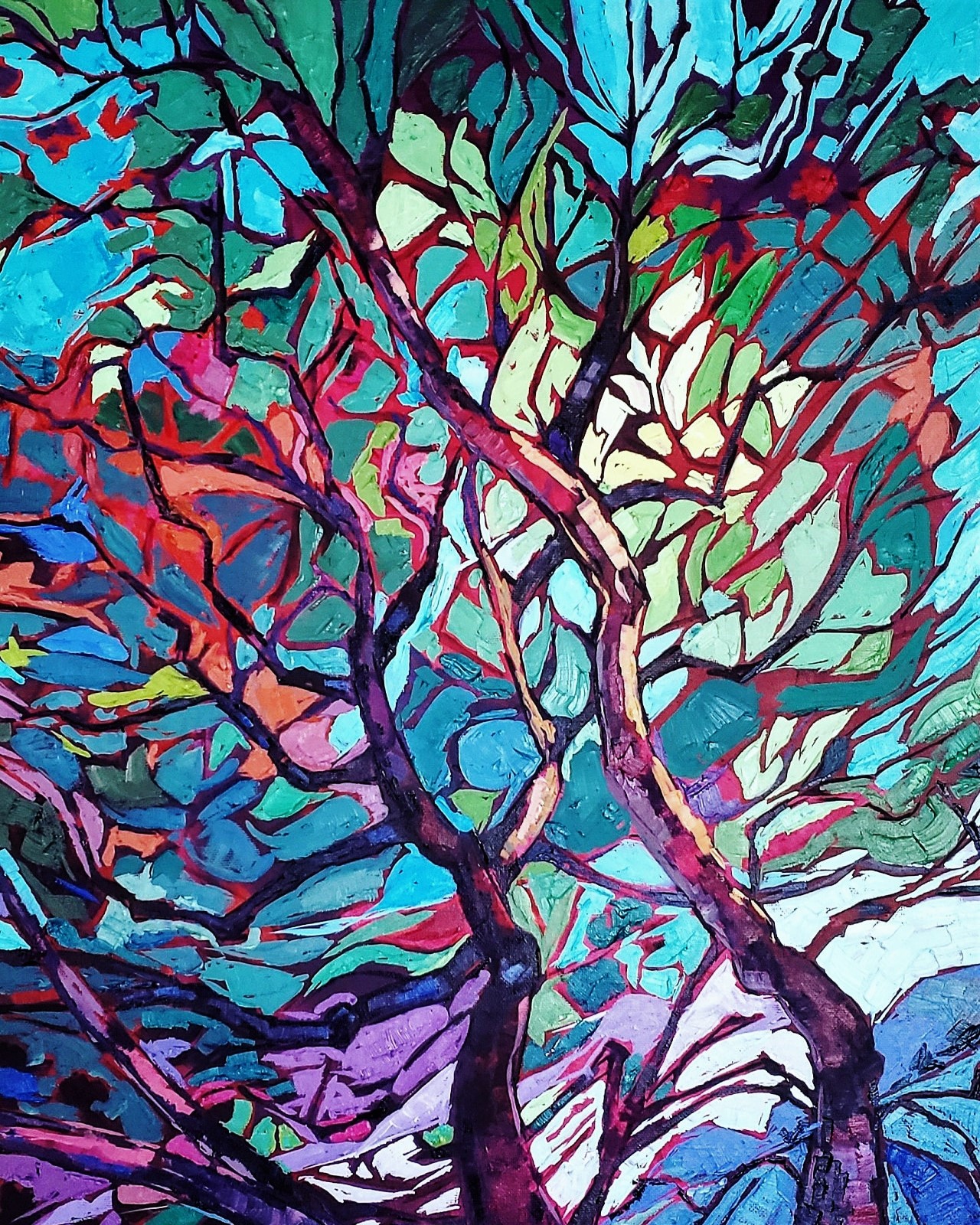 Painted in nature inspired full palette color scheme, the work is sure to delight the viewers. Let me know if you’d like to see the hi res images.