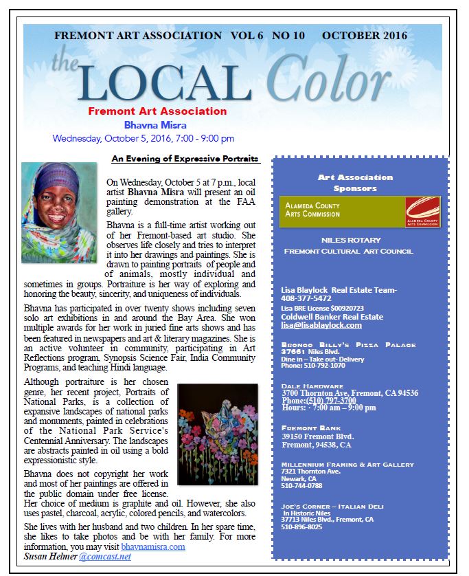 Please come and enjoy the recent oil paintings of Bhavna at the Fremont Main Library. Her work is on display in the large showcase opposite of the check-out station.
