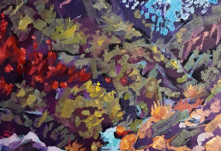 “Stream” – Colorful California Nature Painting by Artist Bhavna Misra