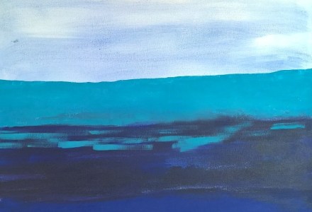 “Blue River” – Small Oil Painting by Bhavna Misra (Sold)