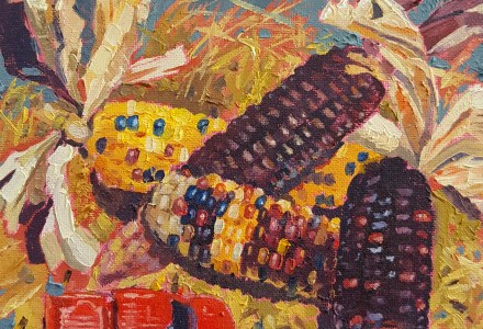 “Corn on the Cob” – Small Sized Oil Painting by Artist Bhavna Misra