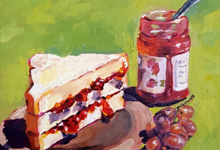 “Cherry on Top” – Small Sized Food Themed Oil Painting by Artist Bhavna Misra