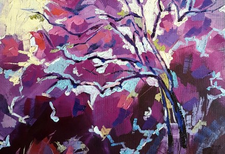 “Jacaranda Dance” – Fine Art Oil Painting by Artist Bhavna Misra