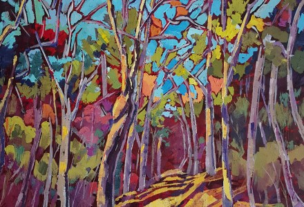 “Welcoming Woods” – Colorful California Nature Painting by Artist Bhavna Misra